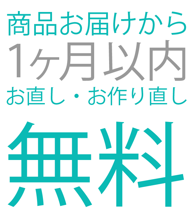 ※無料でのお直し・お作り直しは内容によって対象外となる場合がございます。 対象外のケースについては「なんでもサポート」ページをご参照ください。